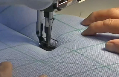 The seating portion of the custom seat cover is sent to the gluing station where we bond the material to a high quality, flame retardant foam. The foam pieces are now ready to be marked with the quilting pattern and then stitched.