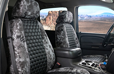 We offer only our most durable, easy-to-clean fabrics for Side-by-Side seat covers, to stand up to the conditions they often encounter. To see the full selection in each line, visit our Seat Cover Builder.