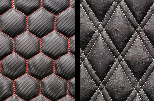 This newer addition to our quilting options, Deluxe Quilting, is available in two different styles: Hex and Double Diamond. Deluxe Quilting features contrasting stitching in a limited range of thread colors (see images below).
